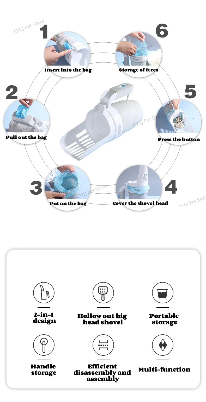 Cat Litter Shovel Scoop with Built-in Garbage Bag For Pet Filter Clean Toilet Garbage Picker Cat Supplies Self Cleaning
