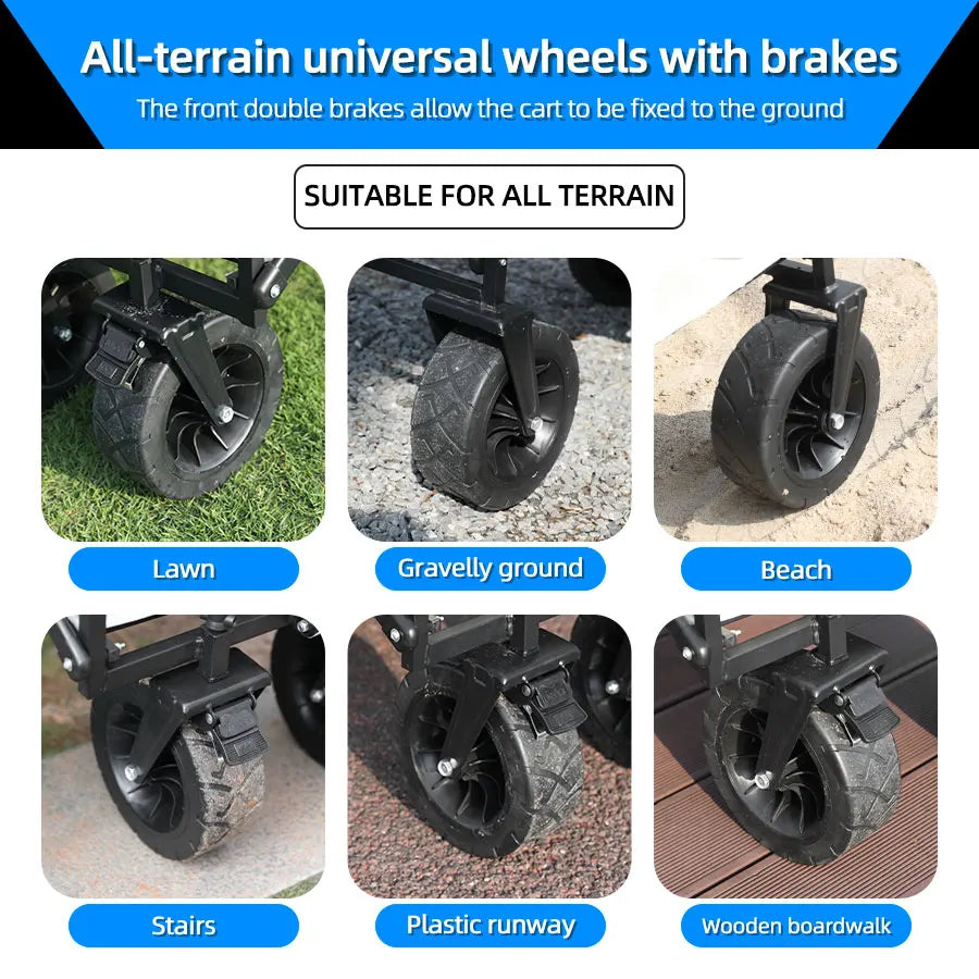 Collapsible Folding Utility Beach Wagon Cart Heavy Duty Large Capacity Fold Wagon Outdoor Trolley Portable Camping Cart Table