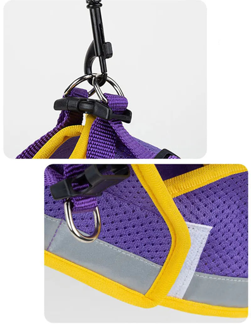 6. D-shaped buckles under the neck, which can be hung with reflective pendants and anti-loss cards and other pendants.