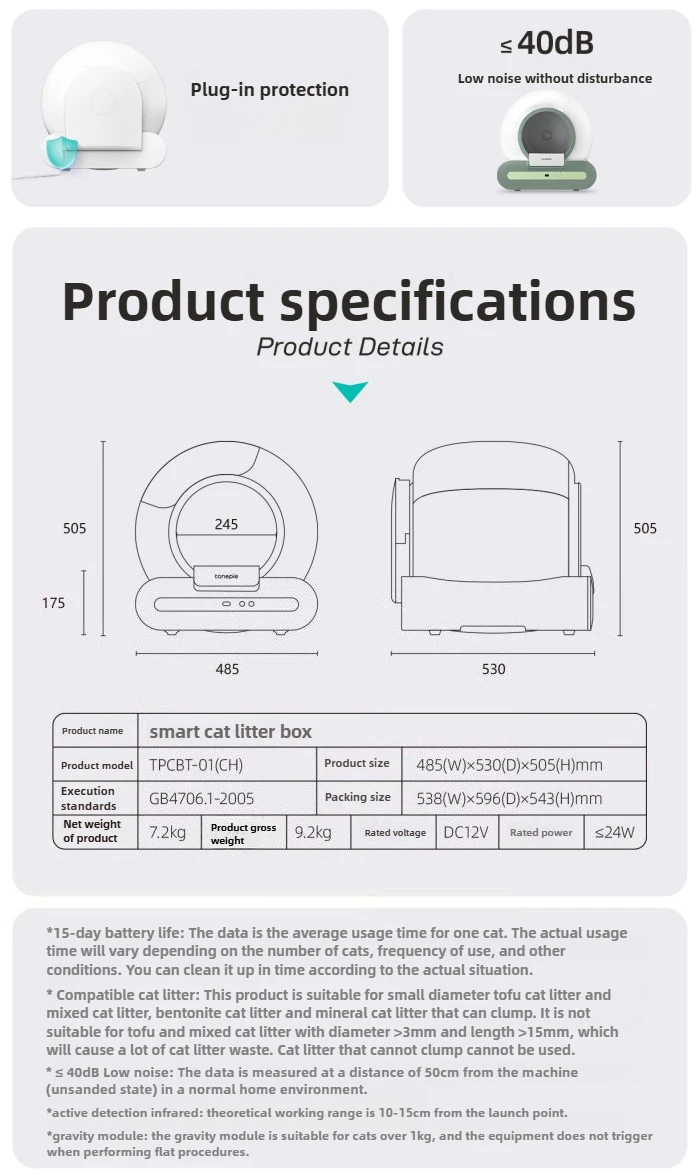 NEW Tonepie 65L Smart Cat Litter Box APP-controlled toilet Wi-Fi-connected,large-capacity,self-cleaning cat litter box EU STOCK