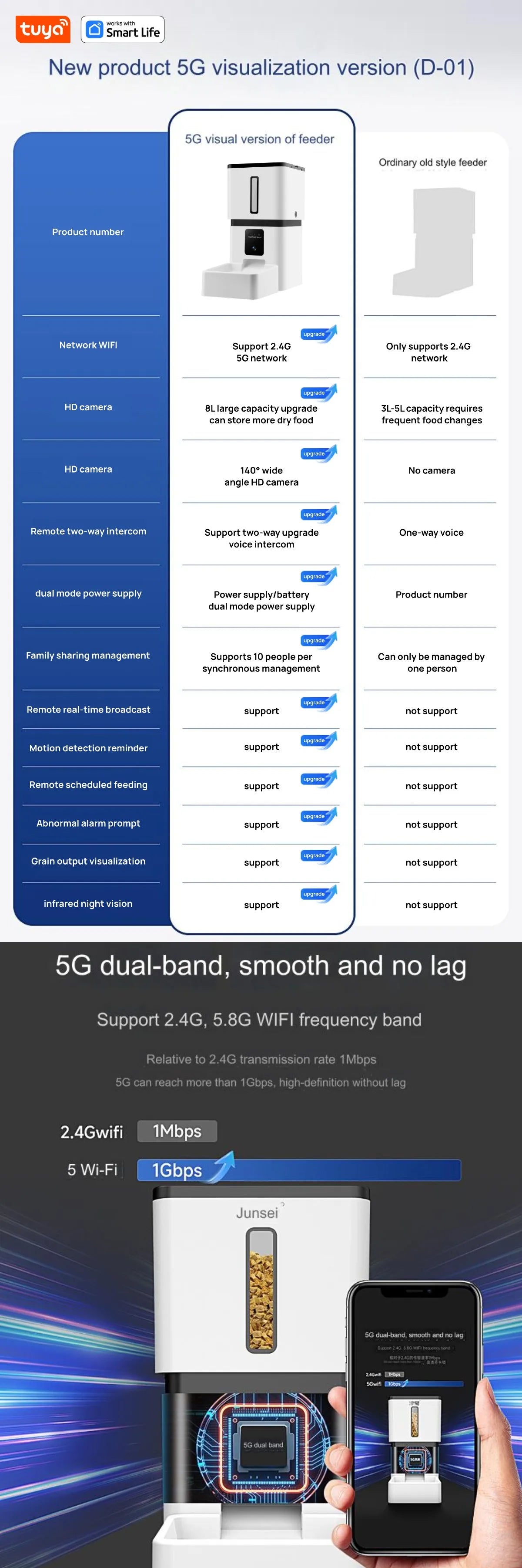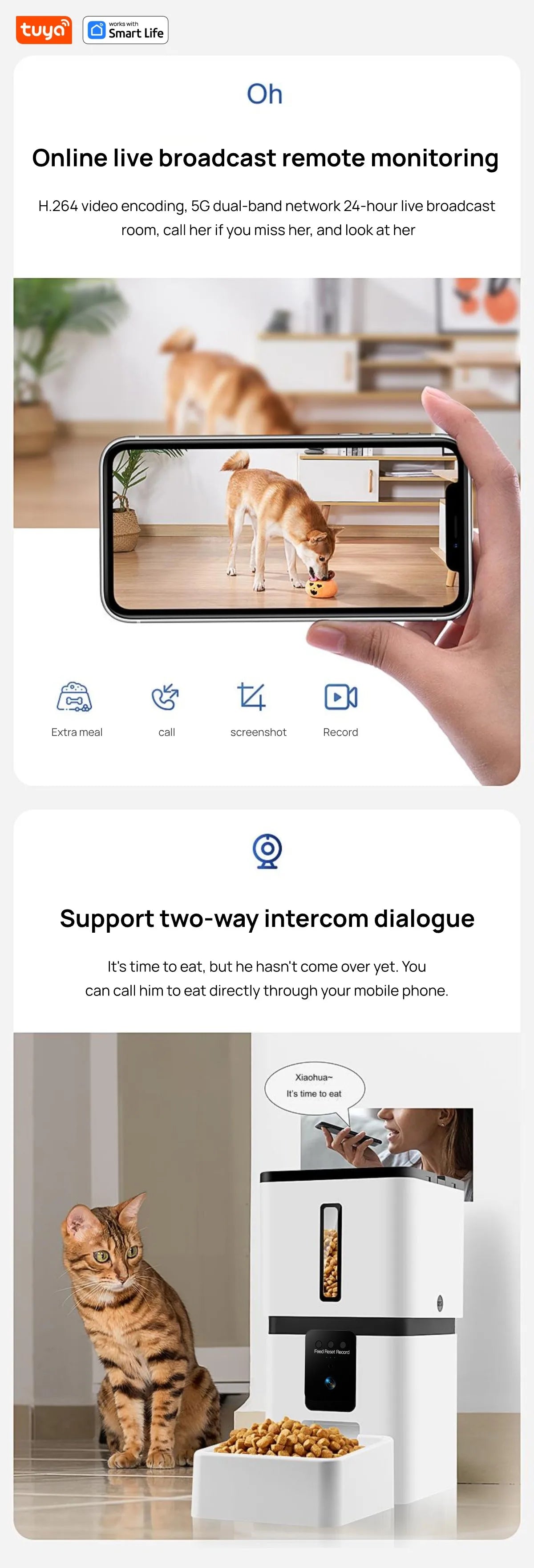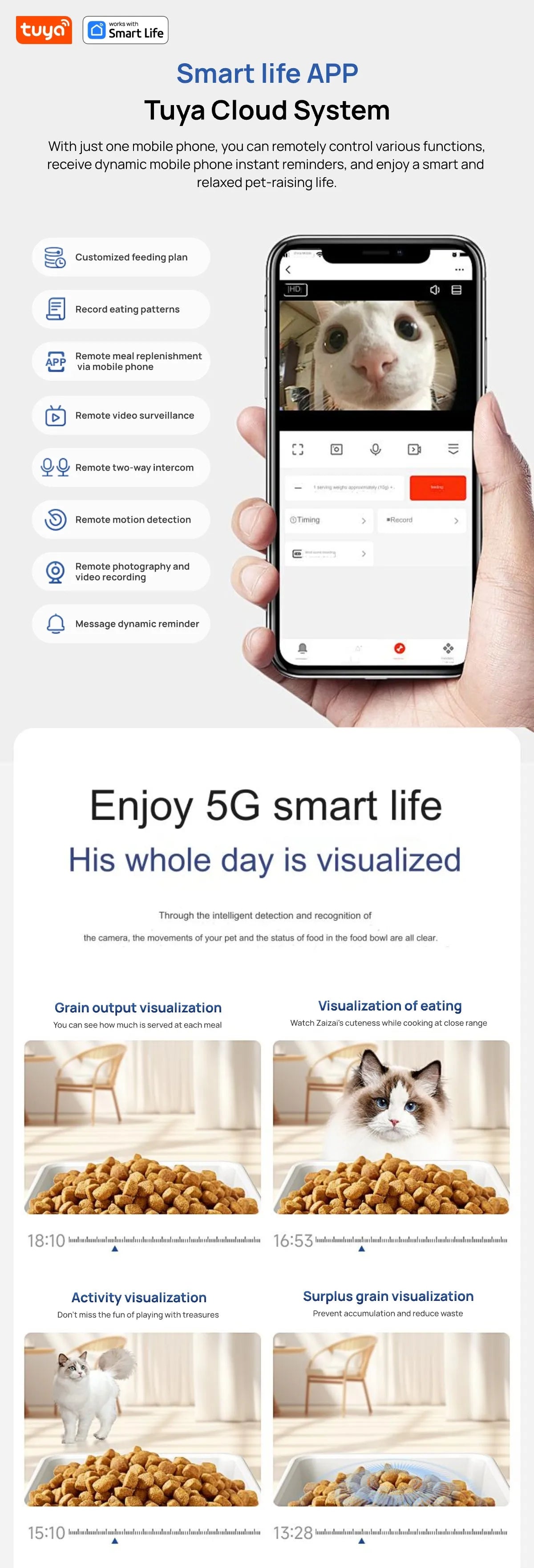 Tuya Smart Cat Food Dispenser Dog Feeder with Camera 5G WiFi 8L Motion Detection HD Video 2-Way Audio Timed Pet Feeder